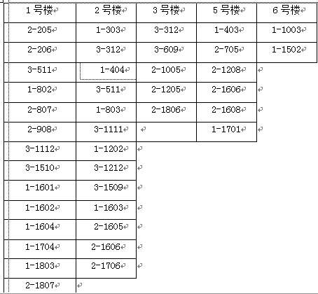 本次办理土地证的房号如下: