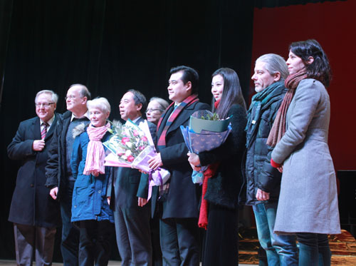 演出结束后,校长甘筱青博士与德国音乐家团队一起上台与韩卉菁博士合影留念。韩卉菁博士也与在场观众进行了亲切的互动。今晚的音乐会给每一位九院师生都留下了难忘的回忆,也将给我校艺术学院的学生们留下深深的启迪。