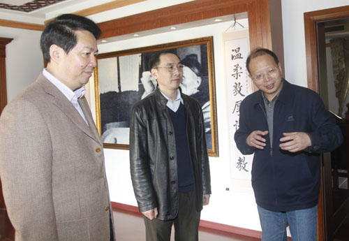 在校期间,叶仁荪一行在郑翔、甘筱青的陪同下,先后参观了毕业生创业展厅、陈寅恪研究院、陶渊明文化研究院。
