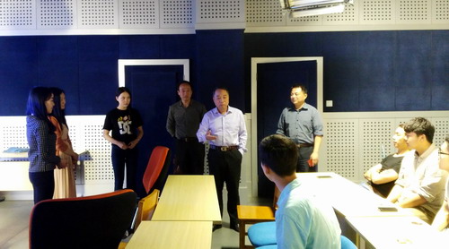 4月28日上午,甘筱青校长到信息技术中心检查指导工作,对中心近期各项工作给予了肯定,对中心今后的建设发展进行了现场指导。文学与传媒学院院长冯敏强,信息技术中心舒长兴副主任、梅龙宝教授等陪同参观了中心网络数据中心、虚拟演播室、动漫设计室、录音工作室,以及新建完成的录播室等。