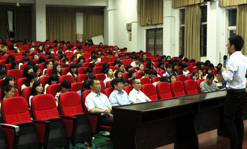 会上,外国语学院在校生、万亮电商总裁黄志翔分享了他的创业历程,从校外兼职到自己创业;从员工到总裁。他走过的不仅是一条创业之路,更是一条成长之路。他表示,自己和自己的团队将竭力帮助有志于创业的学弟学妹们走上创业之路。