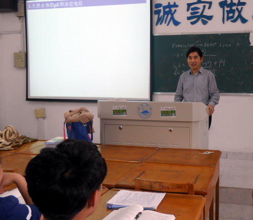魏书记对上课学生也提出建议:环境问题是眼下最热词汇,学好《环境化学》这门课程,必须要掌握这门课程的核心内容,掌握一些环境问题的基本原理。魏书记说他自己也是学化学专业的,勉励同学们学好本专业的各门课程,专业不等同于职业,但通过专业知识的学习,可以训练同学们科学的精神、严谨的态度和细致的作风。