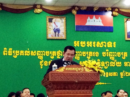 5月11日,柬埔寨亚欧大学举行2015年度毕业典礼,柬埔寨政府洪森总理(H. E. HUN SEN)发表演讲并亲自为毕业生代表颁发毕业证书。