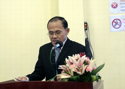 亚欧大学理事长、洪森总理教育顾问董良阁下(Duong Leang)在致辞中重点介绍了孔子学院亚欧大学中文系的情况,亚欧大学中文系现有20名中文教师和3个年级的近700名在校学生,相信中文系在王家研究院孔子学院的大力支持和帮助下,学生人数会越来越多,也会有更多的学生参加HSK考试,申请去中国留学。
