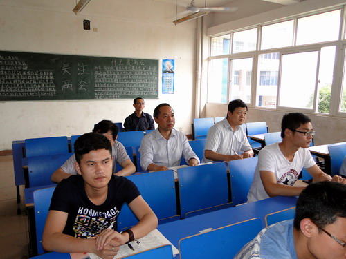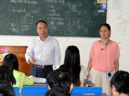 课后甘校长进行了点评。他首先对刘老师的授课给予了肯定的评价,认为刘老师内容熟练,思路清晰,教学效果良好。甘校长着重介绍了我校学术委员会主任潘际銮院士下企业劳动时不畏困难,积极向工人师傅学起并具备六级焊工能力的事迹,以及潘院士在做焊接机器人课题攻关时亲自操作焊枪的事例,鼓励和引领同学们理论联系实际,注重实践能力的培养,做一名真正合格的大学生。