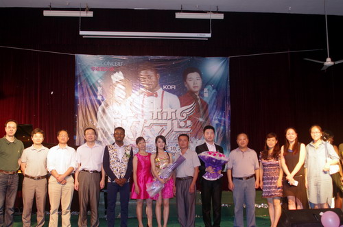 在音乐会的尾声,张彩柳回忆起大学四年的生活学习,忍不住红了眼眶,最后,高瞻、张彩柳、kofi三人共同对九江学院以及学院的老师、亲朋好友们表示感谢。