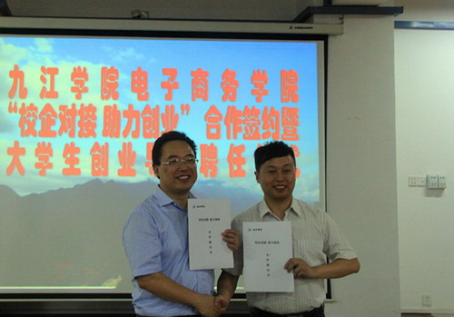 6月25日上午,电子商务学院举办“校企对接助力创业”合作签约暨大学生创业导师聘任仪式,王万山副校长出席仪式并讲话。学生处、校团委负责人,电子商务学院全体教职工及创业团队学生代表参加了仪式。此次仪式共邀请了首批16家企业单位参会,刘鹏飞、刘伯、唐正荣等15名校友和中国移动九江分公司副总经理付小明、九江万亮电子商务公司王玉亮等10名企业家受聘为电商学院大学生创业导师。仪式由电子商务学院党委书记丁文林主持。