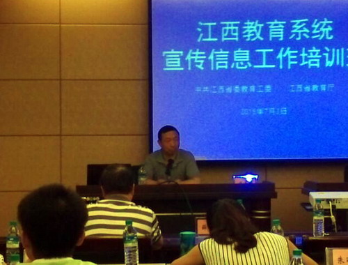 7月2日—3日,省教育厅在南昌航空大学举办全省教育系统新闻宣传工作培训班,集中培训全省高校宣传信息业务骨干,研究部署2015年全省高校宣传思想工作任务。省委教育工委书记黄小华出席并作《贯彻落实 落实中办〔2014〕59号和赣办〔2015〕1号文件精神 开创全省高校宣传思想工作新局面》专题讲座,省教育厅巡视员周金堂主持。全省高校分管宣传工作的校领导、党委宣传部长及宣传信息员,各设区市教育局、省直管县教育局宣传信息员,委厅机关各处室、直属各单位宣传信息员200余人参加。我校副校长杨耀防出席会议,党委宣传部副部长何桂林,党委宣传部文明办副主任吴彭年一同参加了本次培训活动。