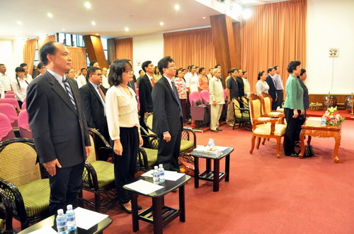 文化和艺术部长彭萨格娜感谢中国大使馆、孔子学院在文化与艺术部和王家艺术大学设立汉语中心,让更多政府官员和对汉语感兴趣的学生有机会学习汉语。她表示,随着中国在国际上的政治、经济、文化、社会等各项事务扮演着越来越重要的角色,汉语也成为人们感兴趣的一门国际语言。目前,文化艺术部已有65名官员报名学习汉语,文化艺术部鼓励更多官员参加学习,因为学会一门外语,就等于打开了同世界交流的另一个大门,有利于进行国际交流与合作。