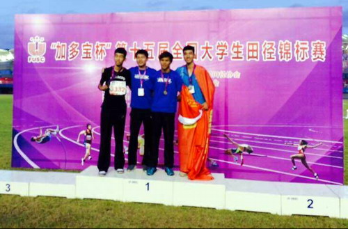 火热的七月,第十五届全国大学生田径锦标赛在广西师大举行,在高手如云的竞争中,我校代表队克服困难,奋力拼搏,黄彬才同学夺得了男子跳高亚军,这是我校有史以来在田径比赛中参加最高级别的、取得最好名次的一次比赛,极大提升了九江学院的知名度。