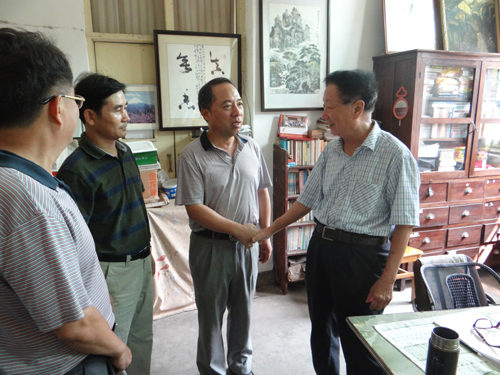 甘校长来到浔东图书馆“陈忠教授工作室”,已过古稀之年的陈老正在案头撰写新的研究心得,甘校长一行的到来让他感到十分高兴。甘校长首先向陈忠教授荣获“全国关心下一代工作先进个人”称号表示祝贺。他指出,陈忠教授关心大学生成长成才,多年来潜心研究教育学、心理学,应各地邀请开办专题讲座一千余场,向广大青年传道解惑,引导他们树立正确的世界观、人生观、价值观。免费接待心理求助者数千人次,是深受青年学生尊敬与爱戴的师长。此次陈忠教授荣获“全国关心下一代工作先进个人”称号,不仅是陈忠教授个人的荣誉,也是九江学院的荣誉。学校将继续创造条件,帮助陈忠教授在关心下一代,关心青年学子方面做出更大的贡献。甘校长强调,陈忠教授多年来在教书育人方面所做的工作堪称楷模,他号召全校教职员工都要向陈忠教授学习,以关心学生,关爱学生成长为己任,教书育人,孜孜不倦。