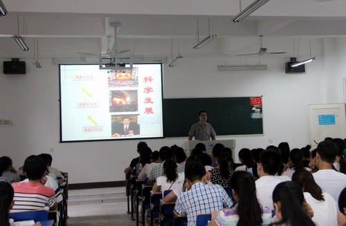 9月6日上午,副校长陶春元来到香远楼202教室,同电商学院A1421、A1431班同学一起听取了王晨副教授讲授的《毛泽东思想和中国特色社会主义理论体系概论》第一章第一节内容。思政部主任汪力平、副主任郑小东一同听课。