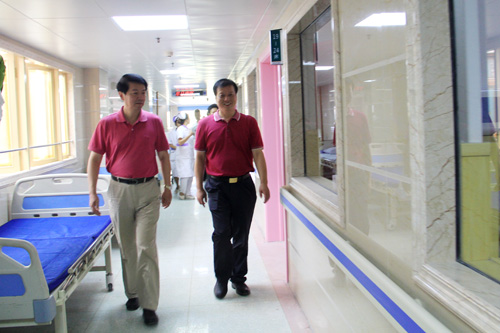 郑书记先后来到临床医学院/附属医院西院正在试运行的南门特色门诊楼乳腺肿瘤科、装饰一新的住院部十楼病房等处,察看了规划合理、流程科学的南门诊室、手术室和温馨舒适、干净整洁的十楼住院病房。看到临街门诊门头用法文书写的“圣味增爵医院”和“1877”字样,郑书记非常高兴,认为理解了他的提议,富有历史的厚重感。