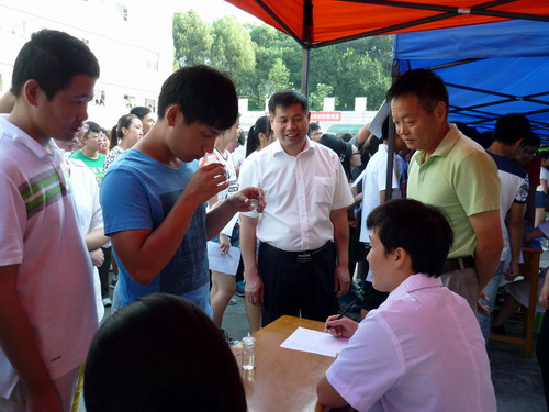 杨副校长一边听取医院负责人对体检工作的汇报,一边现场察看了体检的流程和进度,并和部分体检工作人员和受检的新生进行了交谈。看到整个体检组织严密井然有序,医护人员认真负责,态度和蔼,对本次体检安排工作给予以了充分的肯定,对大家的辛勤工作表示感谢。