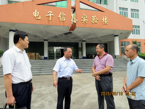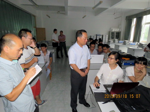 9月18日下午,甘校长在教务处长马明亮、宣传部副部长陈晓松的陪同下来机材学院检查金工实习教学工作,并来到电子信息实验楼302实验室,与电子学院A1441班同学一起听取了吴华杰老师指导的《基本电路课外能力拓展训练》实践课程。机材学院院长张德勤、副院长王英惠、李养良一同检查,电子学院院长高小英、副院长张友木一同听课。