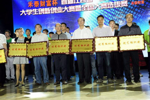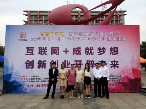 9月12—14日,禾泰财富杯首届江西省“互联网+”大学生创新创业大赛暨全国选拔赛决赛在江西财大进行,由我校信息学院曾怡老师率队,彭晓宇、丁玲丽、胡奕5名同学组成的“丝丝动型”项目团队参加了决赛,并最终获得了银奖。九江学院也获得“优秀组织奖”的荣誉。副校长陶春元上台领奖并与参赛老师及同学们合影。