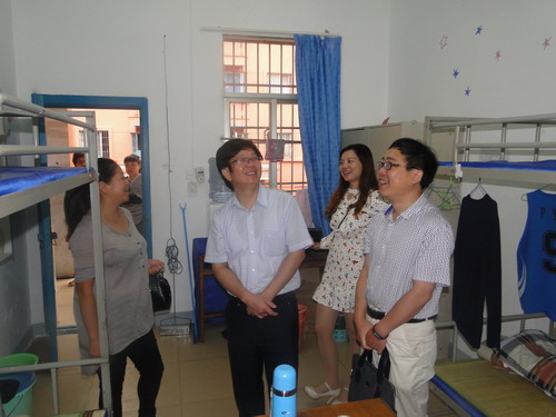 王副校长一行首先来主校区学生宿舍26栋,查看了宿舍外墙漏水情况和门前垃圾袋装化情况。要求宿管中心会同基建处对学生宿舍外墙漏水情况进行一次统计,并尽快做好宿舍外墙防水处理工作。王副校长肯定了宿舍垃圾袋装化取得的成效,同时要求宿舍管理中心做好垃圾桶周围的垃圾清扫工作,保持宿舍的整洁。