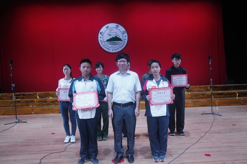 比赛结束后,校长甘筱青、副校长王万山及校团委和会计学院负责人分别为获得本次合唱比赛一、二、三等奖的各个连队颁奖。