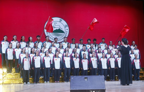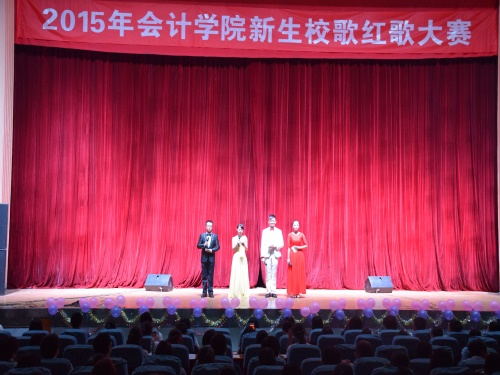 唱响校歌,唱出爱校情;唱响红歌,唱出爱国心。9月28日晚,为庆祝建国66周年暨抗战胜利70周年,会计学院在主校区大礼堂隆重举行“爱我中华,唱响九院”新生校歌红歌合唱大赛,校长甘筱青、副校长王万山到场为获奖班级颁奖。校团委负责人和会计学院党政领导及师生代表、比赛选手计1000余人参加了本次合唱比赛。