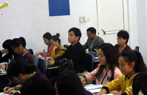 课后,杨副校长欣然进行了点评。他认为,这门课程的开设很有意义,对于帮助学生建立科学的思维方法大有裨益。熊老师内容熟悉,方法灵活,板书规范,互动性强,启发式教学运用得好。同时他也高度肯定了文传学院语文教育专业(B1433班)同学们的积极参与教学,课堂气氛十分活跃。寄语大家早日成人成才。