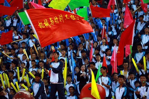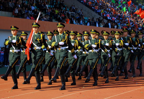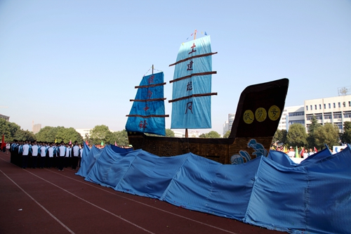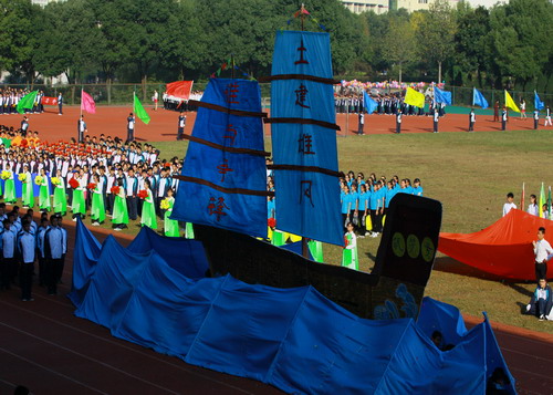 校长甘筱青致开幕词。甘校长指出,体育既是促进学校发展,实现培养目标的重要手段,也是学校加强精神文明建设,培养学生优良品质的重要举措。近年来,学校多次组队参加全省,全国乃至国际性的比赛,成绩喜人,为学校争取荣誉。举办运动会,是对我校体育工作,师生精神风貌和综合素质的大检阅。
