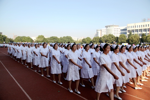 上午8点,场内所有人员注视田径场中心,护国旗队、护校旗队、护会旗队、护会徽队伴随着铿锵有力、激昂奋进的运动员进行曲依次入场。他们英姿飒爽,他们意气风发,他们代表了九院学子对此次运动会的关注与热情。鲜艳的五星红旗在初秋的晨风中鲜艳夺目,校旗、会旗和会徽交相辉映,庄严、神圣。紧随其后的管乐队、鲜花队、彩旗队彰显了我校学子的青春风采,裁判员代表队整齐的步伐彰显了他们严谨、公正的执法风格。