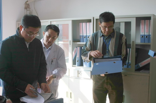 专家二组成员闻德亮教授、郭立教授、赵阳研究员在基础医学院车向新院长和余朝阳书记的陪同下,分别走访和考察了生理学与病理生理学教研室、药理学教研室、病理解剖学教研室、病原生物学与免疫学教研室、组织胚胎学教研室、教务科以及机能实验室、形态学实验室、分析测试实验室、生物化学教研室、系统解剖学实验室和人体形态馆。在考察中,各科室工作人员对本科室的情况进行了简要介绍和汇报;认证专家查阅了各科室的相关资料并与老师进行交流。在实验室,认证专家饶有兴趣地现场观摩实验课,并与正在上课的学生进行交谈。基础医学院的整洁的环境,师生饱满的精神状态和主人翁精神给现场走访专家组留下了深刻印象。