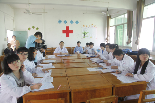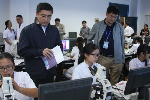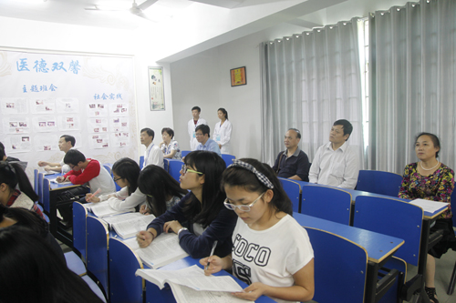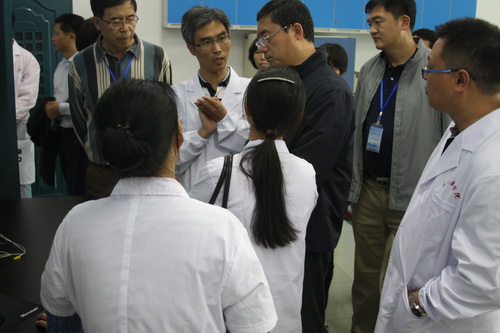 专家们紧接着分成了两个小组,分别进行教学观摩和实地走访。专家一组成员杨棉华教授、王永棣教授、郭立教授在九江学院副校长王万山等领导的陪同下分别听取了基础医学院解剖教研室主任傅文学组织的PBL理论课以及生理学与病理生理学教研室主任何巍所上的临床本科班理论课。课堂上,专家组认真记录并与现场师生进行了互动交流,并对两位老师的教学效果给予了高度评价。