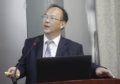 在浔东校区立本楼三楼报告厅,认证专家组副组长杨棉华教授主持基础医学院院长报告会,基础医学院党委书记余朝阳致欢迎辞。