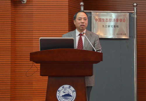 主题报告阶段,中国生态经济学学会常务副理事长李周研究员、中国科学院地理研究所首席研究员董锁成从宏观政策与区划视角分别做了“论生态经济研究视角的拓展”及“中国生态文明建设模式”主题报告。中国科学院生态环境研究中心李锋研究员、环保部华南环境科学研究所彭晓春研究员则从城市与区域尺度分别探讨了“新型城镇化背景下的低碳生态城市与生态管理”、“中山市五桂山自然资源资产核算与领导干部自然资源资产离任审计”。江西省科学院情报所缪坚人研究员则从微观尺度各自阐述了“开发非常规农业(藻类蛋白资源)-中国粮食战略的创新之路”。中国生态经济学学会秘书长于法稳研究员、九江学院副院长陶春元教授、民盟江西省委参政议政部部长熊建平先生、环保部华南环境科学院研究所许振成研究员分别就中国山区生态经济发展、区域产业化路径、长江经济带建设、国家环境资源管理制度做了汇报。