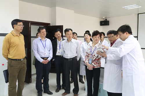 在临床教学实验中心,专家组细致考察了数码显微互动实验室、眼科技能训练室、耳鼻喉科技能训练室、护理模拟病房、儿科技能训练室、影像诊断实验室及远程会诊系统、中央监控室、内科基础技能训练室、模拟ICU/NCU病房、动物实验室和模拟手术室等处,重点观摩了护理实验演示“静脉穿刺术”、“六部洗手法”、高级产妇综合模拟人自然分娩及手动分娩过程、智能综合模拟人生命支持训练演示、心肺复苏术、影像读片等实验项目,了解各项设备设施功能、实验教学实施、学生阶段培养与考核、大学生技能竞赛等情况。在教学楼,专家查看了临床医学院/附属医院教学管理科、教研室、PBL教室,详细了解了教学计划、课程落实、毕业综合技能考试设计方案等情况。