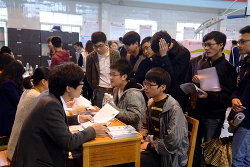 为帮助我校化工、环境、生物、药学专业实现更高质量的就业,满足用人单位人才需求,搭建方便快捷的对接平台,11月7日,由招就处牵头,化环学院、药生学院联合主办的“九江学院2016届化学、环境、生物、药学毕业生行业招聘会”在主校区南区体育馆成功举办。此次招聘会吸引了扬子江药业集团、江中制药集团、江苏恒力集团等50余家知名企业参会,提供就业岗位近千个。