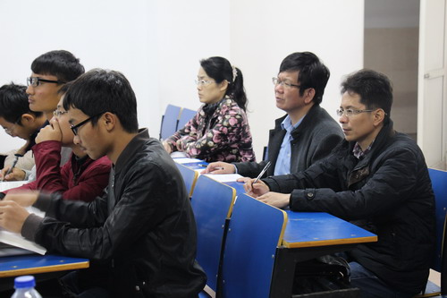11月11日下午,王万山副校长来到竞知楼702教室,与机材学院A1513/A1571班同学一起听取了胡孔刚老师讲授的《机械制图》课程。机材学院党委副书记陈胜才和副院长王英惠一同听课。