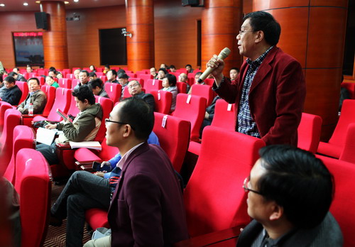 在第一个议题中,九江学院党委书记郑翔、九江学院冷树青教授、九江学院陈胜才教授分别对百年中国社会风习演变的几个问题、社会风习概念的理解与界定和《百年中国社会风习寻脉》的基本内容作了深入浅出的阐释说明,随后清华大学国家文化产业研究中心主任熊澄宇教授、中国人民大学校长助理郝立新教授、清华大学公共管理学院王有强教授和江西师范大学祝黄河教授等先后作了精彩点评。与会人员还就研讨中的相关问题进行了互动交流。