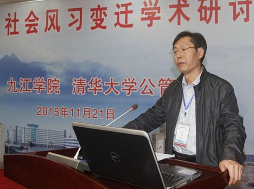 龚建文指出,九江学院研究团队从社会结构转型的角度,深入考察百年中国社会风习的失范性,对于深刻把握百年中国社会风习演变的性质、特点和规律,总结社会风习失范的经验教训,揭示社会主义核心价值观引领当代中国社会风习变迁的内在机理等等,都具有十分重要的意义。三年来,九江学院研究团队潜心研究,精益求精,推出了研究成果《百年中国社会风习寻脉》一书。这次,九江学院与清华大学公共管理学院共襄盛举,邀请众多国内社会科学研究界的硕学俊彦齐聚一堂,共同探讨百年中国社会风习演变,探索促进良善社会风尚建立和进一步弘扬社会主义核心价值观的有效途径,十分必要,正当其时。