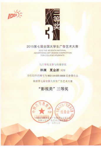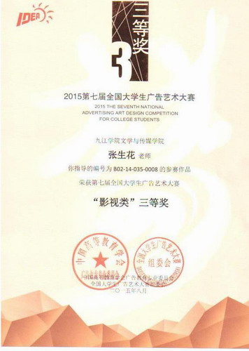 在本次大广赛中,由张生花、周子渊指导,李松等同学制作的影视广告《别让成功只差一步》还荣获了第7届大广赛影视类作品的全国优秀奖。在江西赛区中,张生花、周子渊指导的学生还荣获一等奖2项,三等奖2项。
