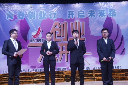 11月27日下午,以“青春创业行、开启未来路”为主题的江西省第二届大学生创业公开课在我校大礼堂举行专场,校长甘筱青、副校长陶春元、省广播电视台综合新闻频率总监罗春瑜、省就业办副主任贾桂业、市国税局政策法规科副科长田绍华出席,全校900余名教师和学生代表观看了此次公开课。此项活动由江西省教育厅、江西省人力资源和社会保障厅、江西省国税局、江西省工信委、江西省科技厅、江西省工商联、江西广播电视台联合主办,进行了现场录像和全程视频直播。