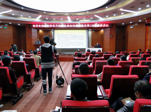 12月3日下午,南昌师范学院校长林加奇教授做客我校第138期濂溪讲坛,在逸夫图书馆学术报告厅为我校师生带来了题为“对接和融入经济发展新常态”的精彩讲座。校长甘筱青、纪委书记魏立平、副校长杨耀防到场聆听了讲座。讲座由副校长陶春元主持。