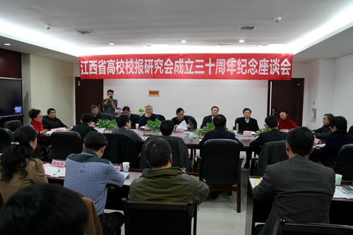 10日上午,江西省高等学校校报研究会成立三十周年纪念座谈会在宜春职业技术学院科技综合楼会议室举行。省委教育工委副书记、省教育厅副厅长喻晓社,宜春市政府副市长周志平,宜春学院党委书记肖华茵,华东交通大学党委副书记、省高校校报研究会理事长汪立夏,景德镇市人大前主任、省高校校报研究会首任秘书长王力农,宜春职业技术学院党委书记宋晓文和校长杨云山出席,以及来自全省28所高校校报新老报人代表、省高校校报研究会常务理事及理事代表50余人参加了座谈会。省高校校报研究会常务理事、我校校报编辑部主任李龙参加了座谈会。