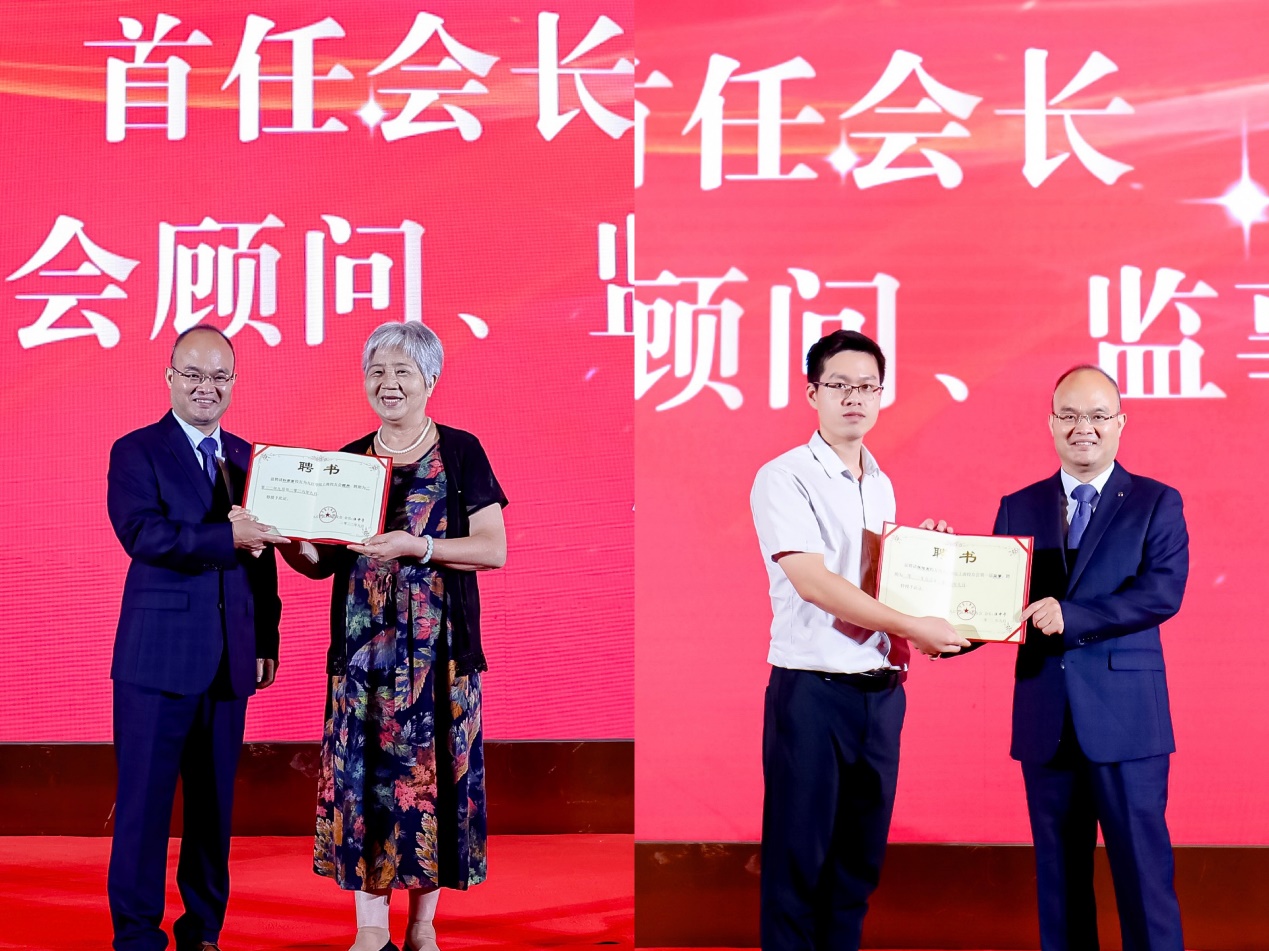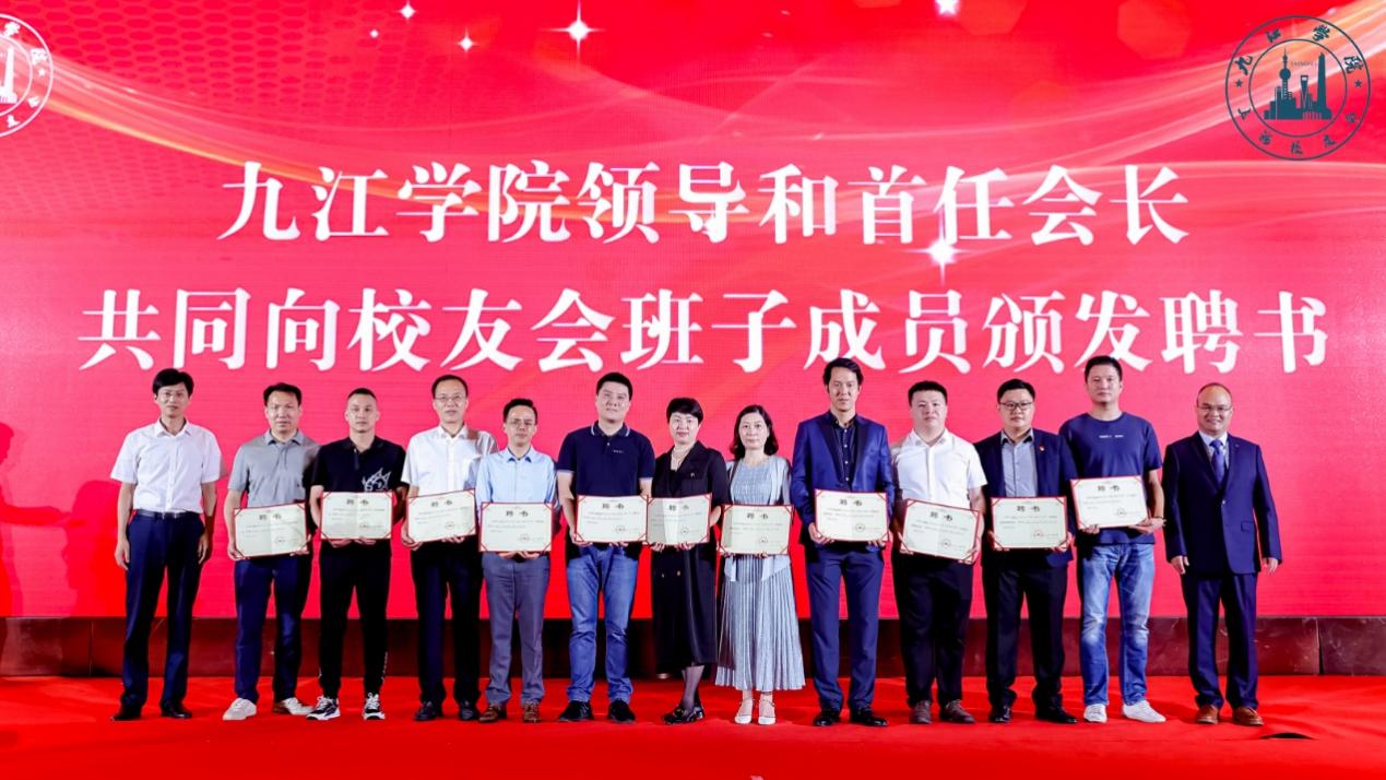首任会长汪中于为九江学院上海校友会第一届顾问、监事颁发聘书;查振华和首任会长汪中于为上海校友会常务副会长、执行副会长、副会长和秘书长颁发聘书。