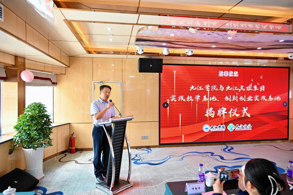 9月28日上午,我校与九江市文旅集团共建实践教学基地、创新创业实践基地揭牌仪式在浔阳江号邮轮上成功举行。我校副校长严平,九江市文旅集团党委书记、董事长王叙宇,我校教务处、产学研办、创新创业学院、建工学院、旅游与地理学院、体育学院、管理学院、外语学院、国际交流学院、计算机与大数据学院、文学院、艺术学院负责人等出席揭牌仪式。仪式由文旅集团党委副书记、总经理许松华主持。