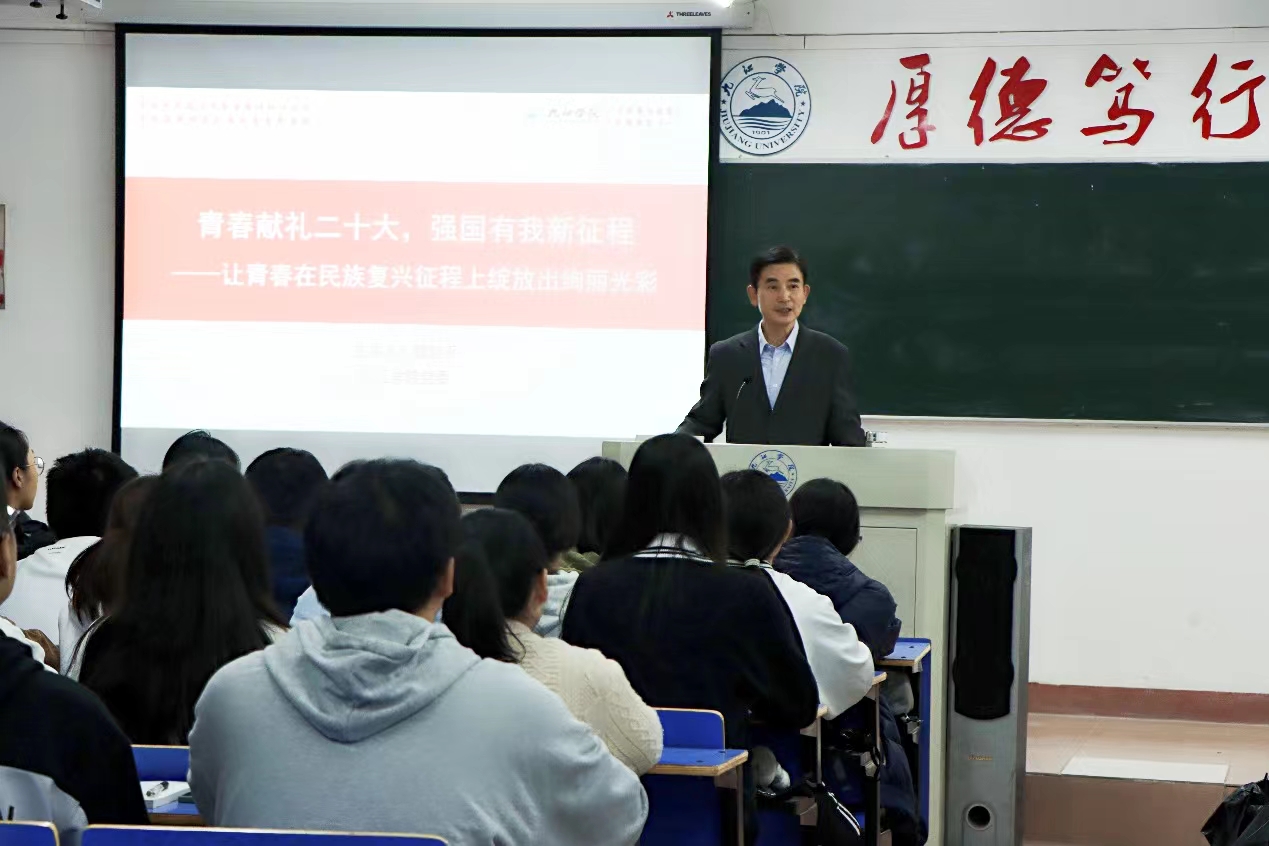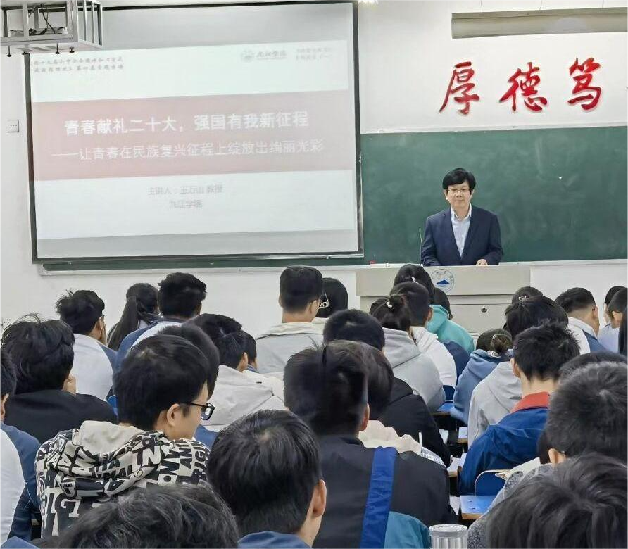 10月8日,十一小长假后的第一天,刚刚结束军训和入学教育的九江学院2022级新生迎来了他们大学生活中的第一堂课。校党委书记赵伟、校长陈小林等学校领导班子成员及各二级学院院长、书记走进教室,走上讲台为新生上思政课,热烈欢迎新同学来到美丽的九江学院,勉励新同学珍惜大学时光、青春时光,练就过硬本领,筑牢人生之基,努力成长为堪当民族复兴重任的时代新人,让青春在民族复兴征程上绽放出绚丽光彩。