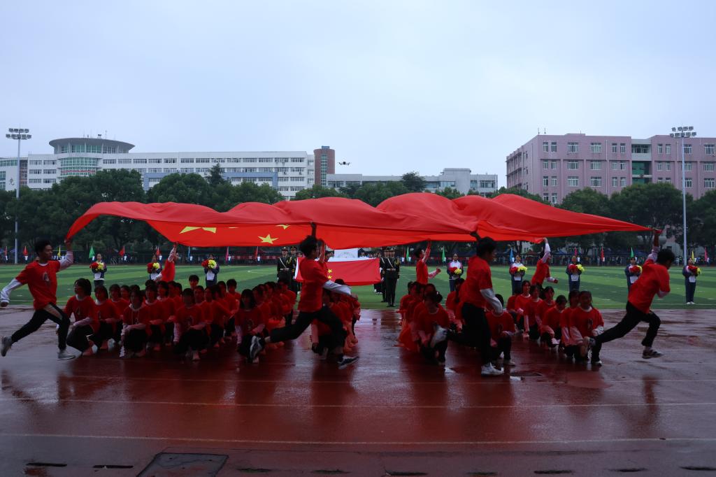 入场仪式结束后,国旗班的同学们迈着矫健整齐的步伐走向升旗台。庄严的国歌声响起,在全体师生的注目礼下,五星红旗冉冉升起,飘扬在学校的上空。