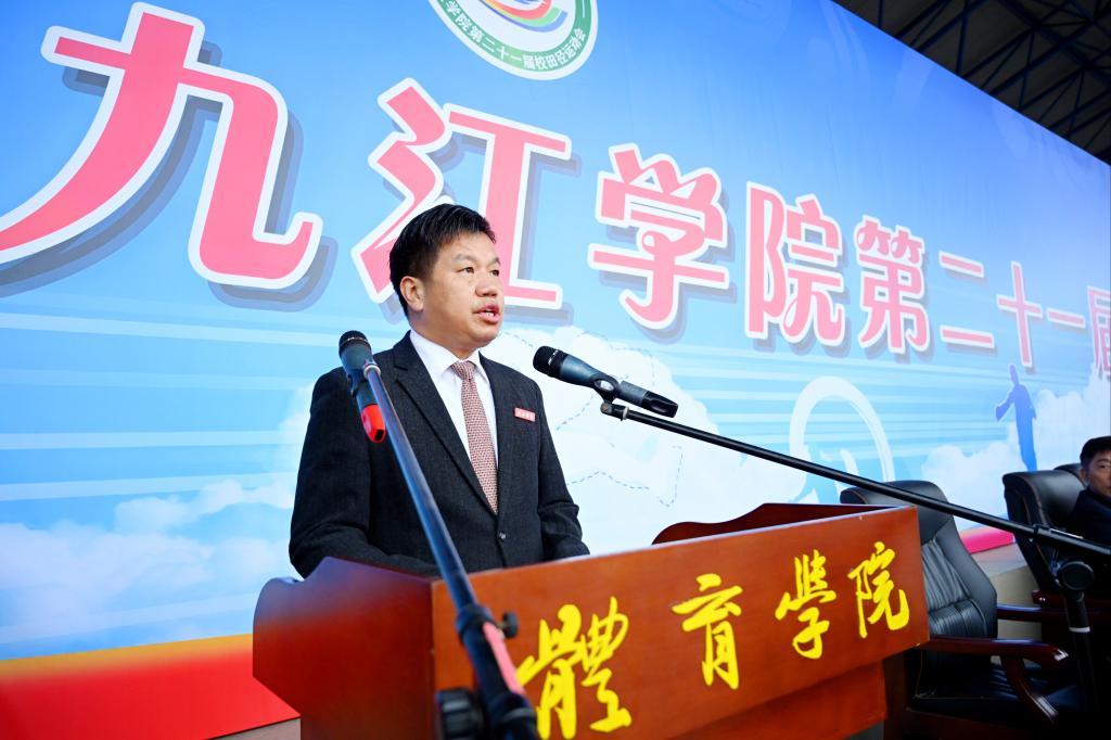 在运动员代表、裁判员代表宣誓后,校党委书记赵伟宣布:九江学院第二十一届运动会开幕!