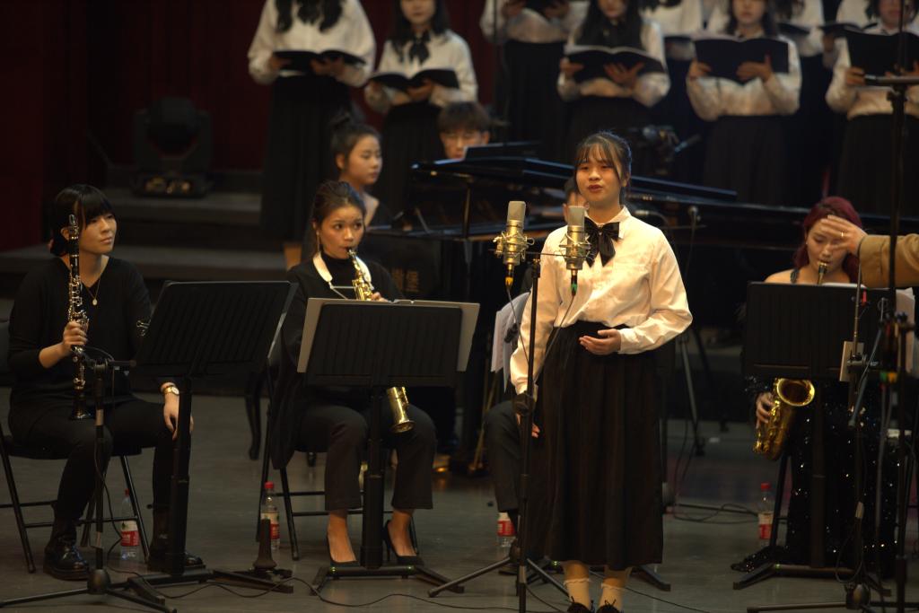 音乐会在壮美悠扬的《九江学院校歌》中拉开帷幕,唱响了九院莘莘学子共创美好校园的信心与决心。作品《欢庆舞曲》《瑶族舞曲》《青年圆舞曲》,既是向党的二十大的献礼,也表达了辞旧迎新之际的美好祝福。《新的天地》《送你一把泥土》传递出浓烈的爱国情怀。室内乐合唱、独唱、朗诵组曲《浔城谷雨诗钞》分为《五言律诗·九江》《漫步浔城》《初春》《走》《甘棠遗梦》等九个段落,音乐风格抒情婉转、舒适动听,将原诗作的文学意境升华至新的境界。