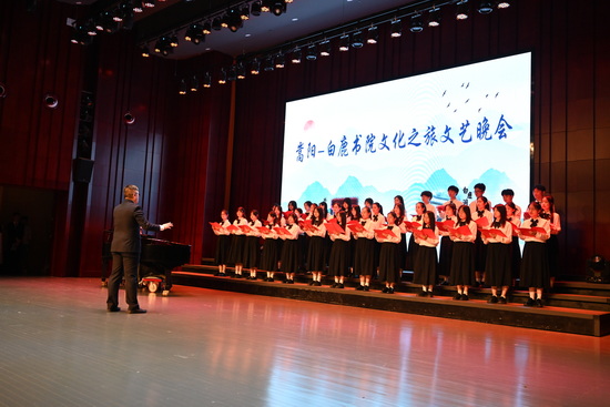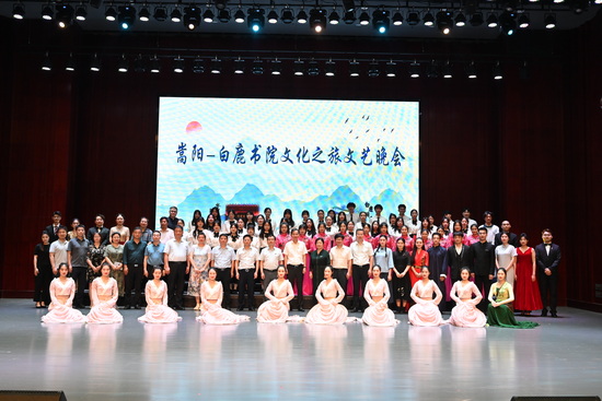 当晚,“嵩阳-白鹿书院文化之旅”文艺晚会在我校艺术学院演艺厅隆重举行。郑州大学访问团和我校师生为晚会带来了11个精彩的节目。郑州大学副校长张倩红,我校党委书记赵伟,副校长王万山、李松志,原副校长陈春生,校党委委员、宣传部部长刘平,郑州大学访问团、我校各单位负责人以及师生代表观看了晚会。