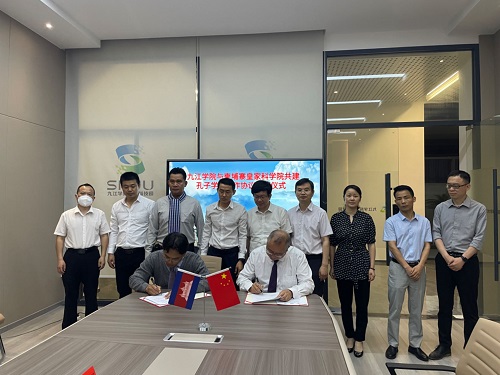 在校期间,代表团先后参加了柬埔寨皇家科学院孔子学院理事会、乡村旅游规划座谈会、九江学院与皇家科学院校际合作洽谈会,双方就孔子学院建设和发展、柬埔寨/中国研究、国际中文教育、柬埔寨旅游/乡村规划、柬埔寨植物保护、医疗卫生等方面开展了讨论,达成了相关合作意向,并续签了共建柬埔寨皇家科学院孔子学院执行协议。