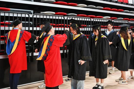 在学位授予仪式上,校长陈小林、副校长王万山等校领导为毕业生代表颁发毕业证书,各二级学院院长走到毕业生中间,为2023届九院毕业生拨穗正冠、握手拥抱,祝愿他们前程似锦、鹏程万里。