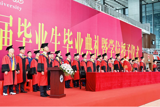 “我亲眼见证着九江学院发生翻天覆地的变化,翻新的教学楼、崭新的体育馆、恢宏的新校区,无不彰显着九院一校两园建设欣欣向荣,无不彰显着区域性高水平应用型大学建设如火如荼。让我们一起祝福我们的母校再创辉煌、更上层楼;也祝福我们自己前程似锦、鹏程万里!”毕业生代表,九江学院“大学生年度人物”“十佳大学生”、叔子爱莲奖学金获得者,管理学院A1932班王小康同学在发言中表达了对学校和老师的深情感恩。