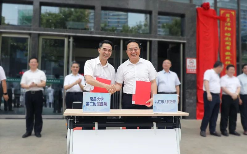 8月25日,九江市人民政府与南昌大学第二附属医院合作共建九江学院附属医院脑血管病区域医疗中心战略合作协议签约暨江西省脑血管病区域医疗中心挂牌仪式在九江学院附属医院门诊大楼北广场隆重举行。同时,南昌大学第二附属医院组织多学科专家来九江学院附属医院开展义诊和患者查房等业务指导工作。